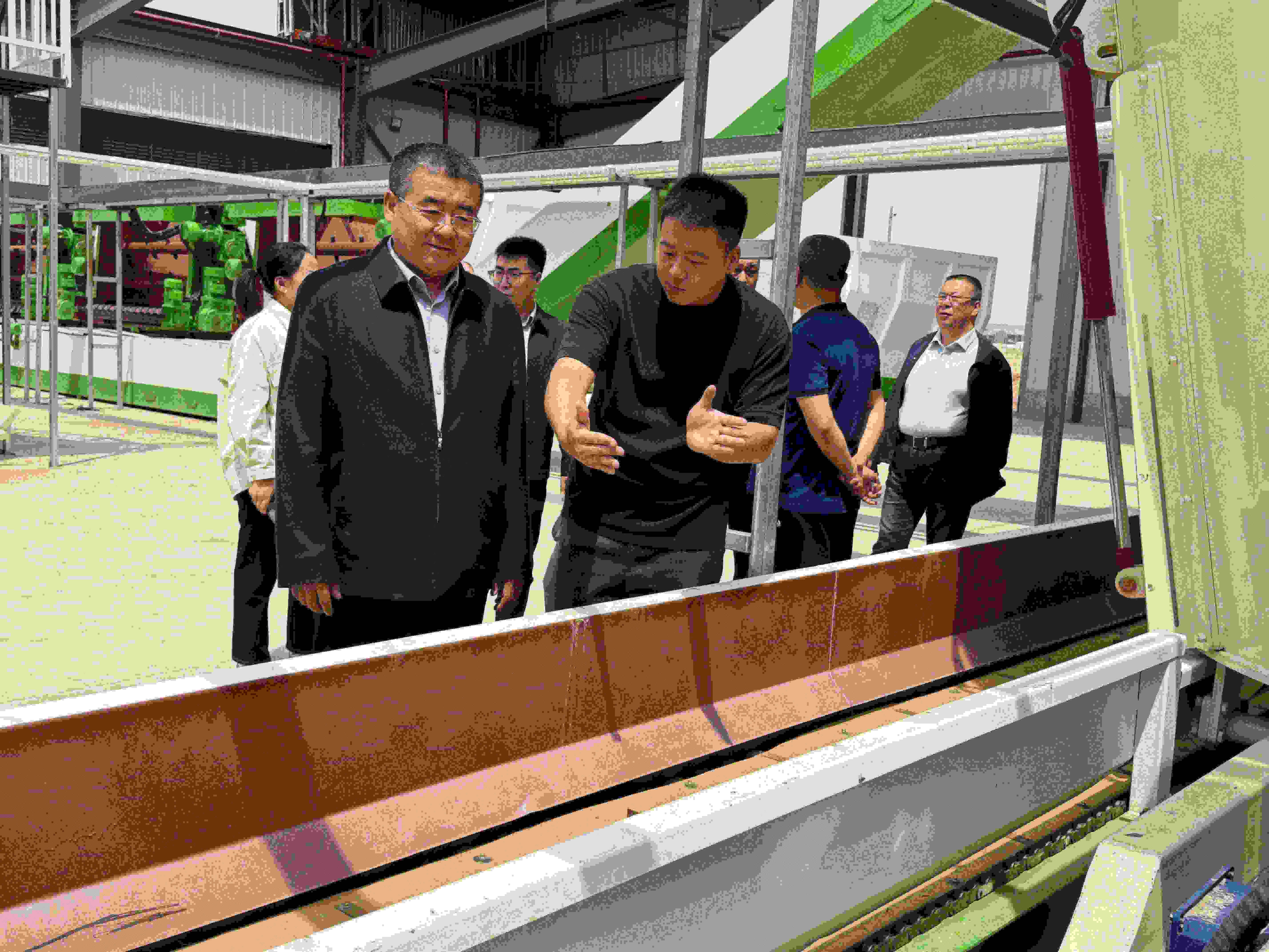 領導們駐足于全自動攪拌發酵設備前,詳細詢問技術細節。鄧海東補充道:“這套系統不僅大幅降低養殖戶的飼喂成本,更通過精準營養調控,使肉牛育肥周期大幅縮短,同時有效緩解草原載畜壓力。目前我們已帶動周邊千戶牧民采用科學飼喂模式。”